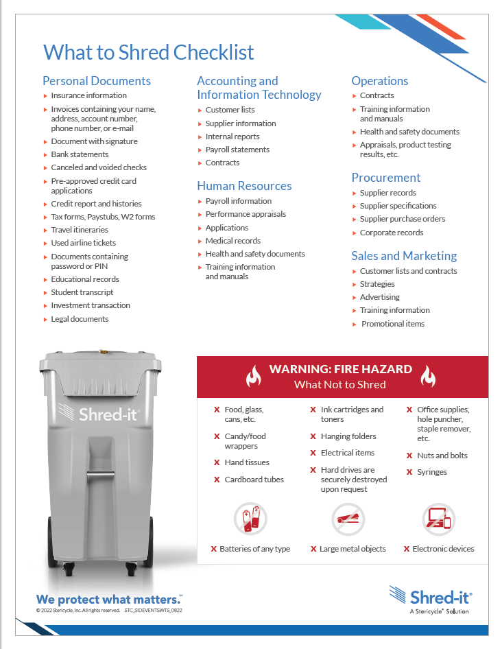 Below is a list of acceptable items for Shred Day. Hope to see you there!